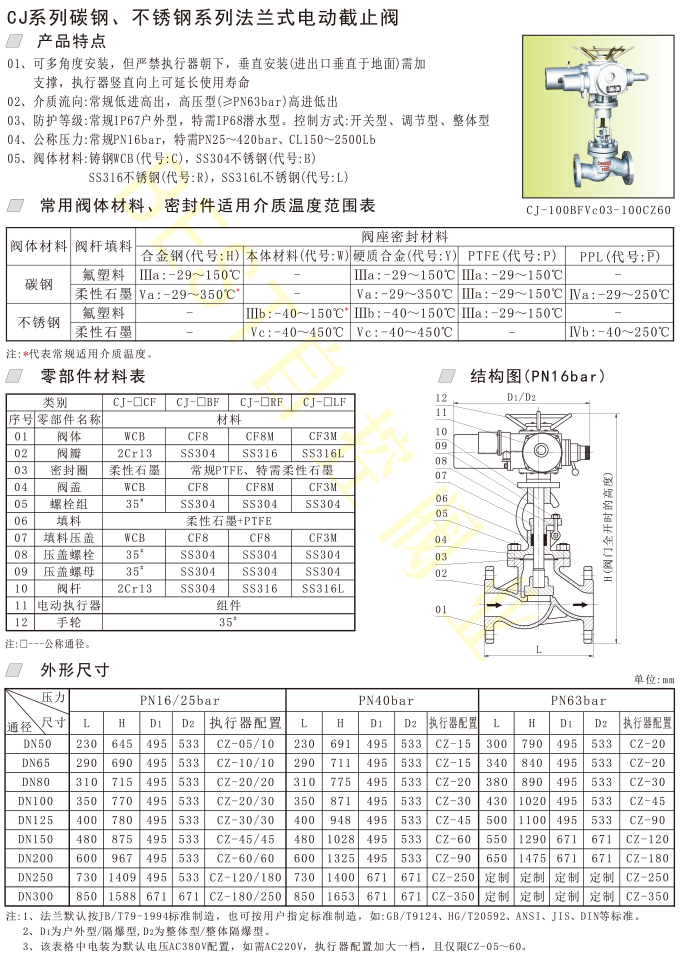 CJ系列碳钢、不锈钢系列法兰式电动截止阀