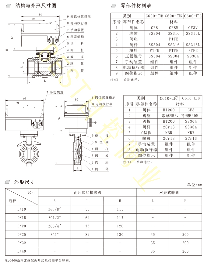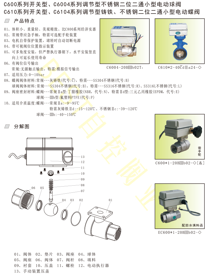 C610系列开关型、C6104系列调节型铸铁、不锈钢二位二通小型电动蝶阀
