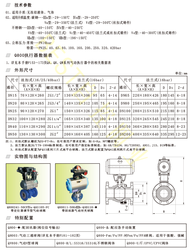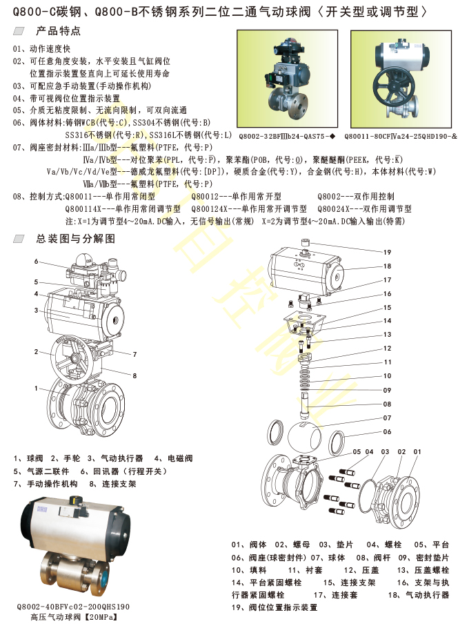 Q800-C碳钢、Q800-B不锈钢系列二位二通气动球阀〈开关型或调节型〉