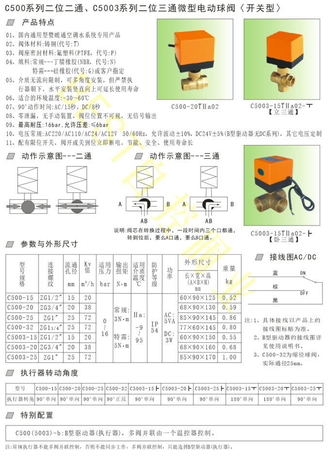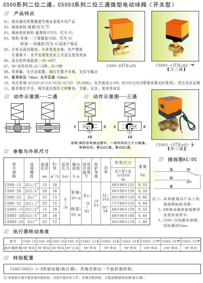 C500系列二位二通、C5003系列二位三通微型电动球阀〈开关型〉