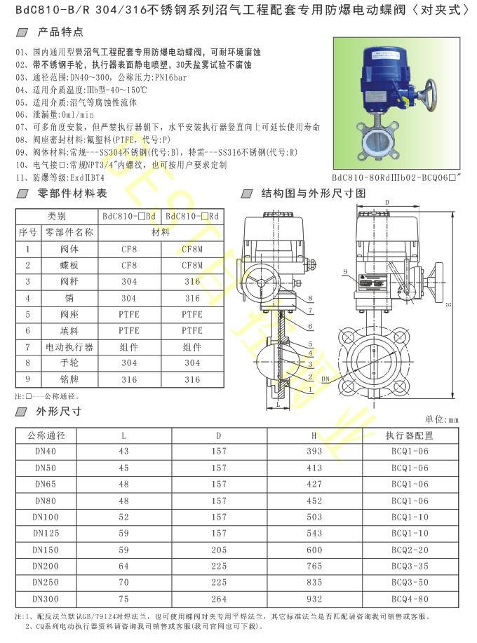 BdC810-B/R 304/316不锈钢系列沼气工程配套专用防爆电动蝶阀〈腐蚀环境专用阀〉