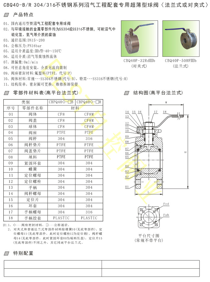 CBQ40-B/R 304/316不锈钢系列沼气工程配套专用超薄型球阀〈腐蚀环境专用阀〉