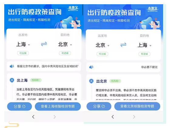 PS:风险等级随疫情动态调整,在上海本地宝微信对话框发送【风险】可进入查询入口,查询各城市的疫情风险等级。