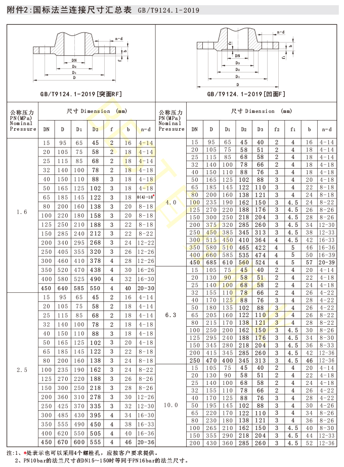 附件2:国标法兰连接尺寸汇总表 GB/T9124.1-2019