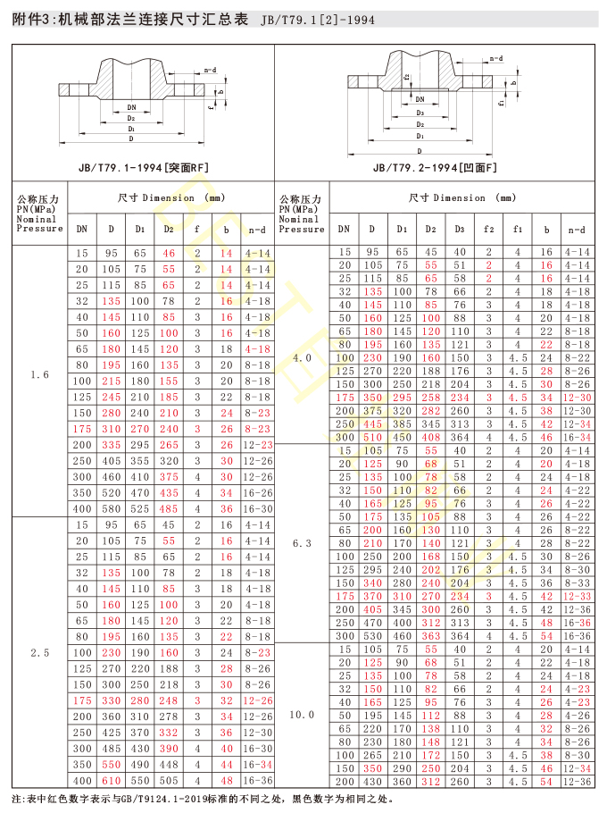 附件3:机械部法兰连接尺寸汇总表 JB/T79.1[2]-1994