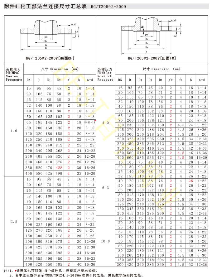 附件4:化工部法兰连接尺寸汇总表 HG/T20592-2009