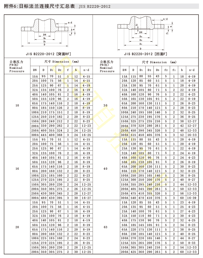 附件6:日标法兰连接尺寸汇总表 JIS B2220-2012