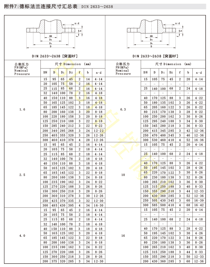 附件7:德标法兰连接尺寸汇总表 DIN 2633~2638