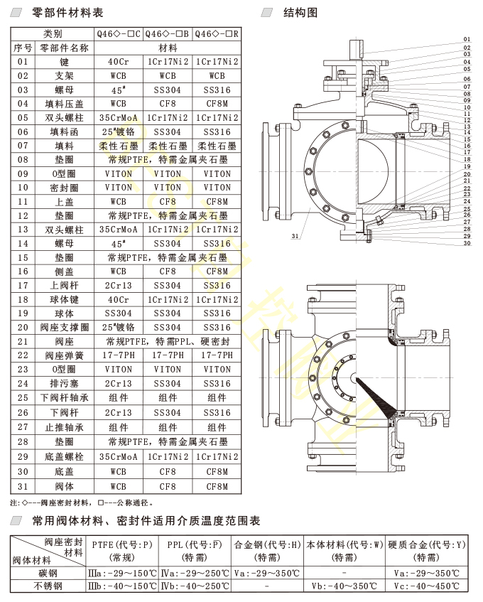 05、阀体材料:铸钢WCB(代号:C),SS304不锈钢(代号:B),SS316不锈钢(代号:R),