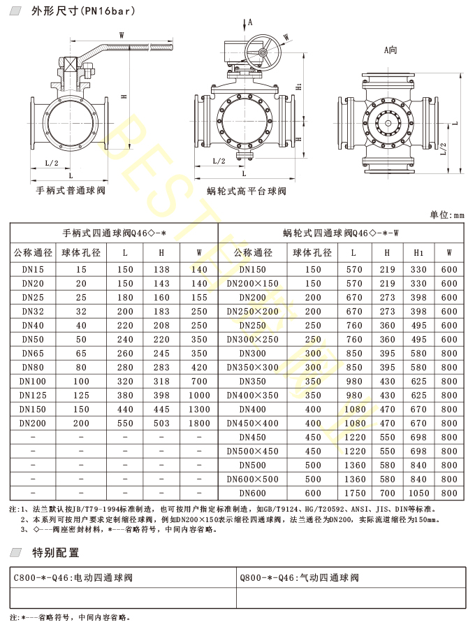 Q46碳钢、不锈钢系列四通固定球阀〈法兰式〉